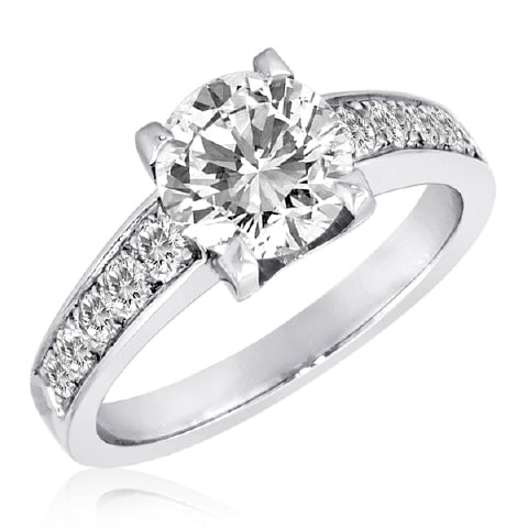 Michael Bondanza's platinum engagement rings make a statement, like his 'Dakota' sculptural setting, sleek and modernist, and set on the side with 0.35 cts of diamond pavé in this contemporary mounting.