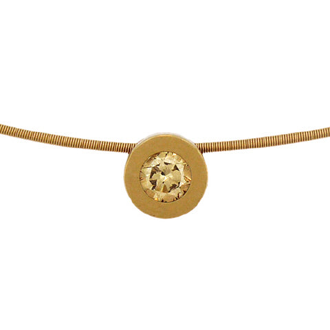 Niessing's 18K rose gold diamond pendant has the signature post-modern design of Niessing with a deep solid gold barrel setting for the half-carat sherry brown diamond set at center, on a 16" 18K rose gold coil, sold separately.