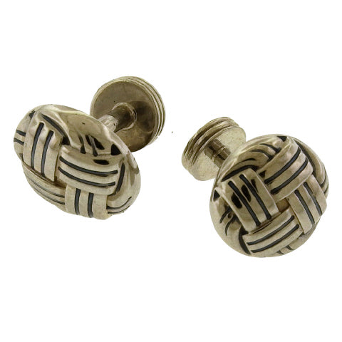 Silvertone heavy basketweave cufflinks,3/4" in diameter,monogrammed backs.