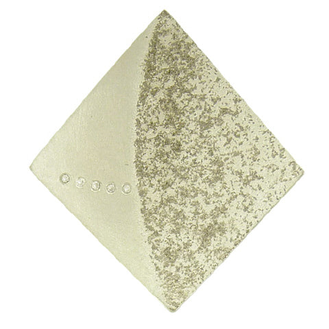 We've been watching Simon Spinoly's work for some time,as he is a former goldsmith for Atelier Zobel,and we like what we have seen recently. Here he hammers a curved kite-shaped pendant in sterling silver,then textures one side with palladium particles. Diamond accents 0.05 cts catch the light in this very wearable pendand,measuring 1-1/4" square.