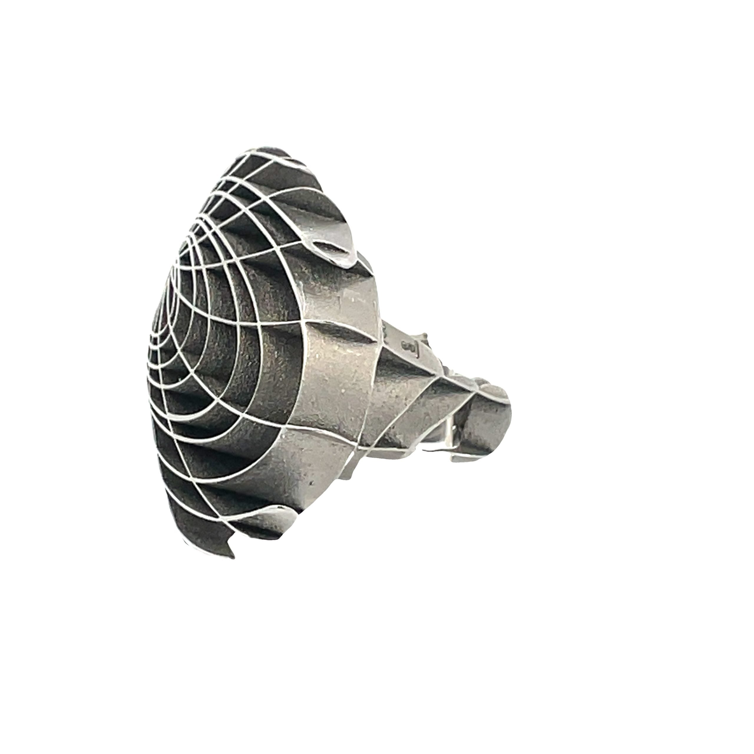 Stefania Lucchetta's 'AN Crystal 82' ring in stellite measures 2" x 1-1/4" and is ring size 7.75.