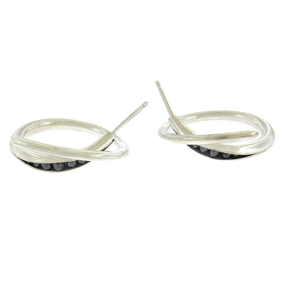Timo Krapf: Black Diamond Sterling Hoop Earrings