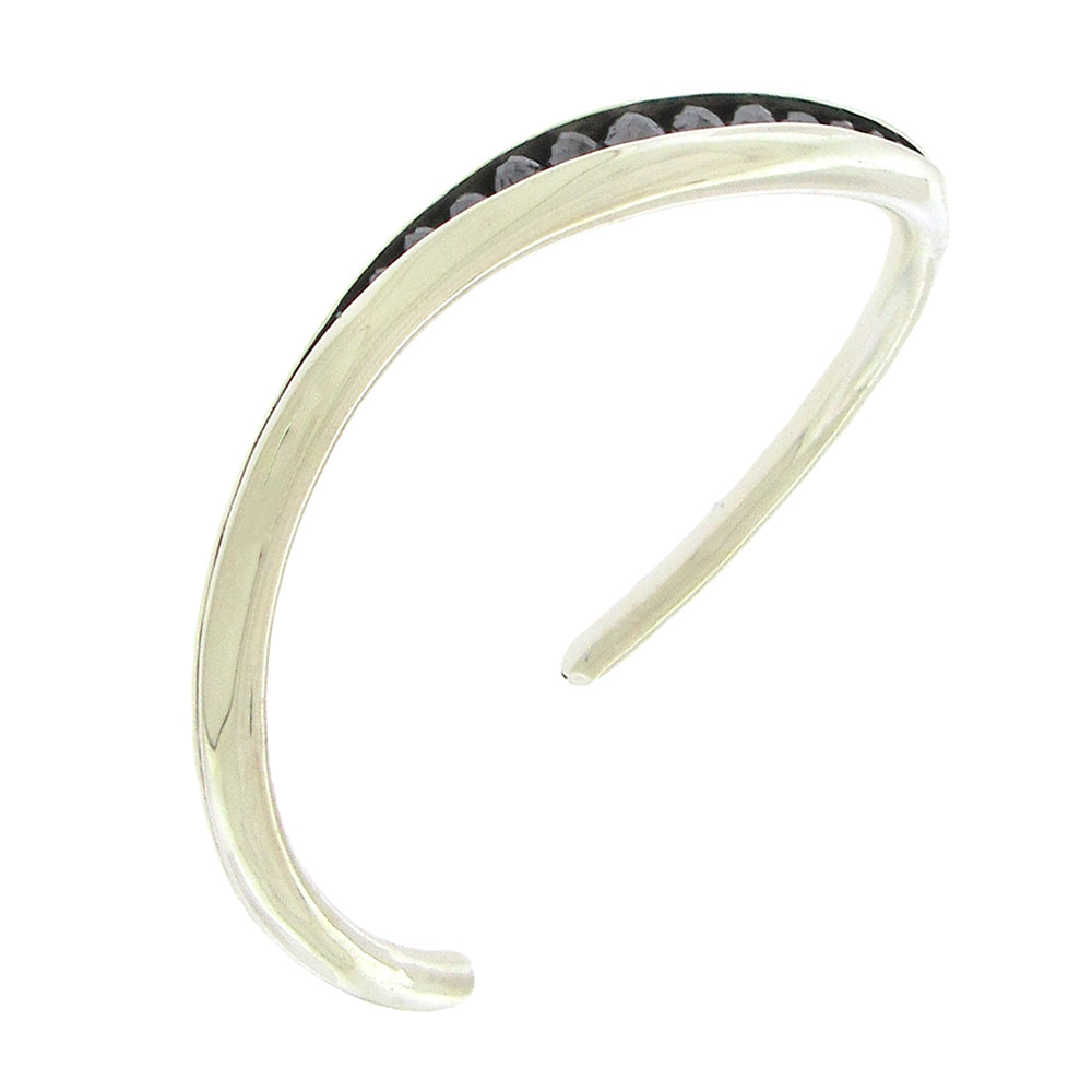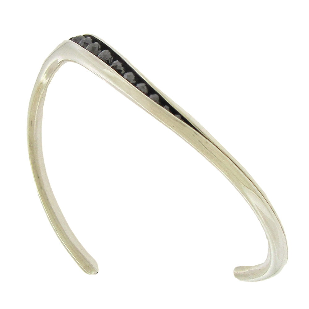 Sterling silver anticlastic Wave cuff bracelet by Timo Krapf is 6mm at the widest, set with 5.70 carats TW black diamonds, fits medium wrists.