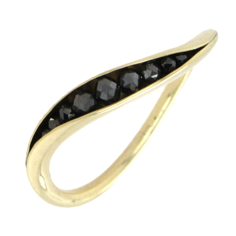 18K yellow gold and black diamonds, 0.67 cts TW, are set in Timo Krapf's curved Wave ring, forged by hand, to wear singly or in groups. The ring measures 3mm at the widest and this one is size 7, can be ordered in your preferred size.