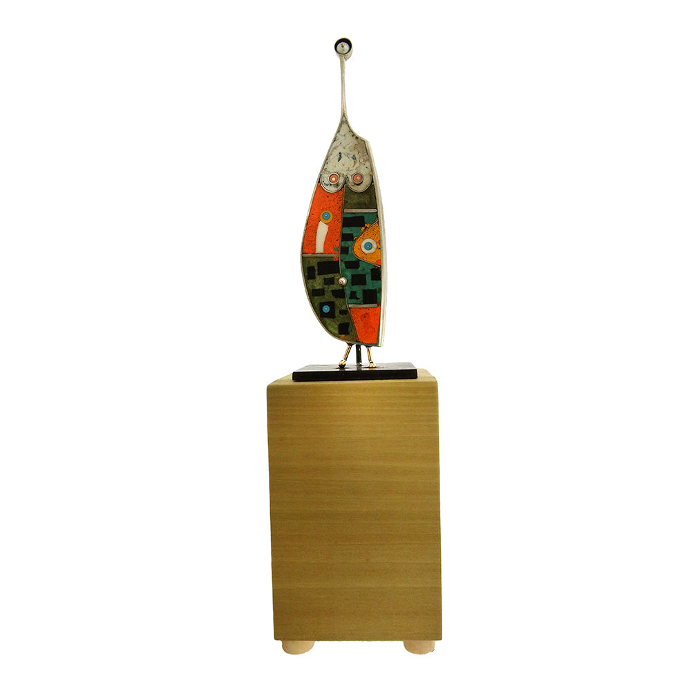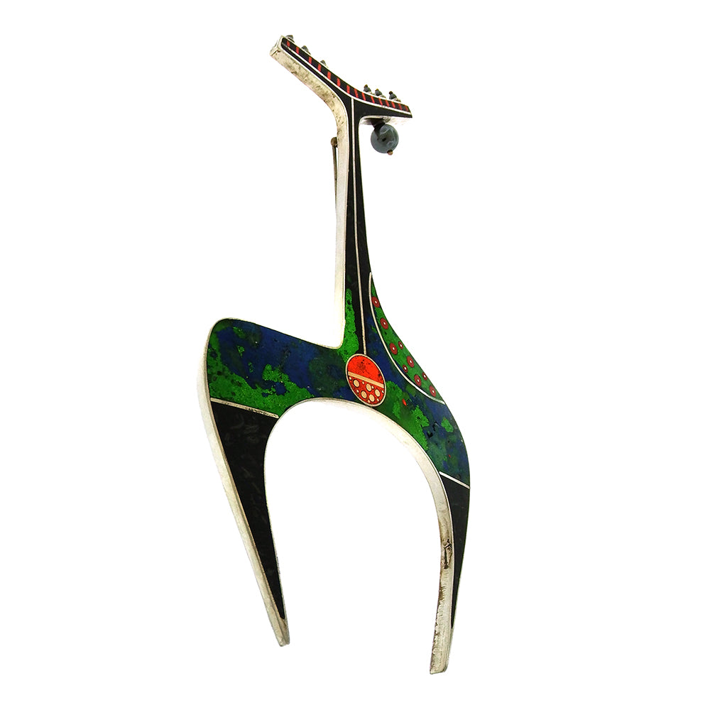 Tod Pardon (1952 – ) creates jewelry that reflects the myriad intellectual and visual influences for the artist of the twenty-first century. His anthropomorphic brooches and sculpture are strongly influenced by African sculpture, imagery and color; by contemporary pop culture, including video, music and computer graphics; by the influences of Modernism and Surrealism; and directly or indirectly by the artistic career of his father, Earl Pardon.